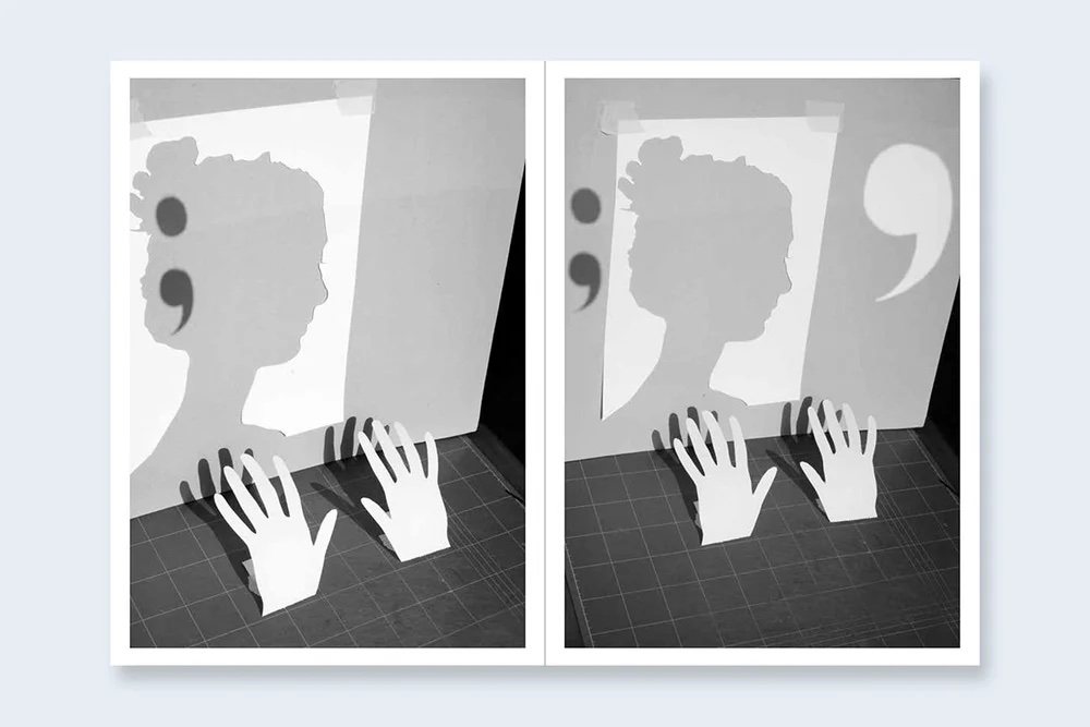 In 2023, the ADI Design Museum in Milan commissioned Benedetta Casagrande to create an homage to Italian writer and design historian Anty Pansera. Experimenting in the studio and in the darkroom with the raw materials of writing and of design – paper and sign – Casagrande produced series “Paperworks” in which a limited set of paper cut outs is recombined and reconfigured in each frame. The signs of language (full stops, commas, semicolons, the letter “A”) and silhouettes of the artist’s body meet, interact and play out onto the photographic surface.