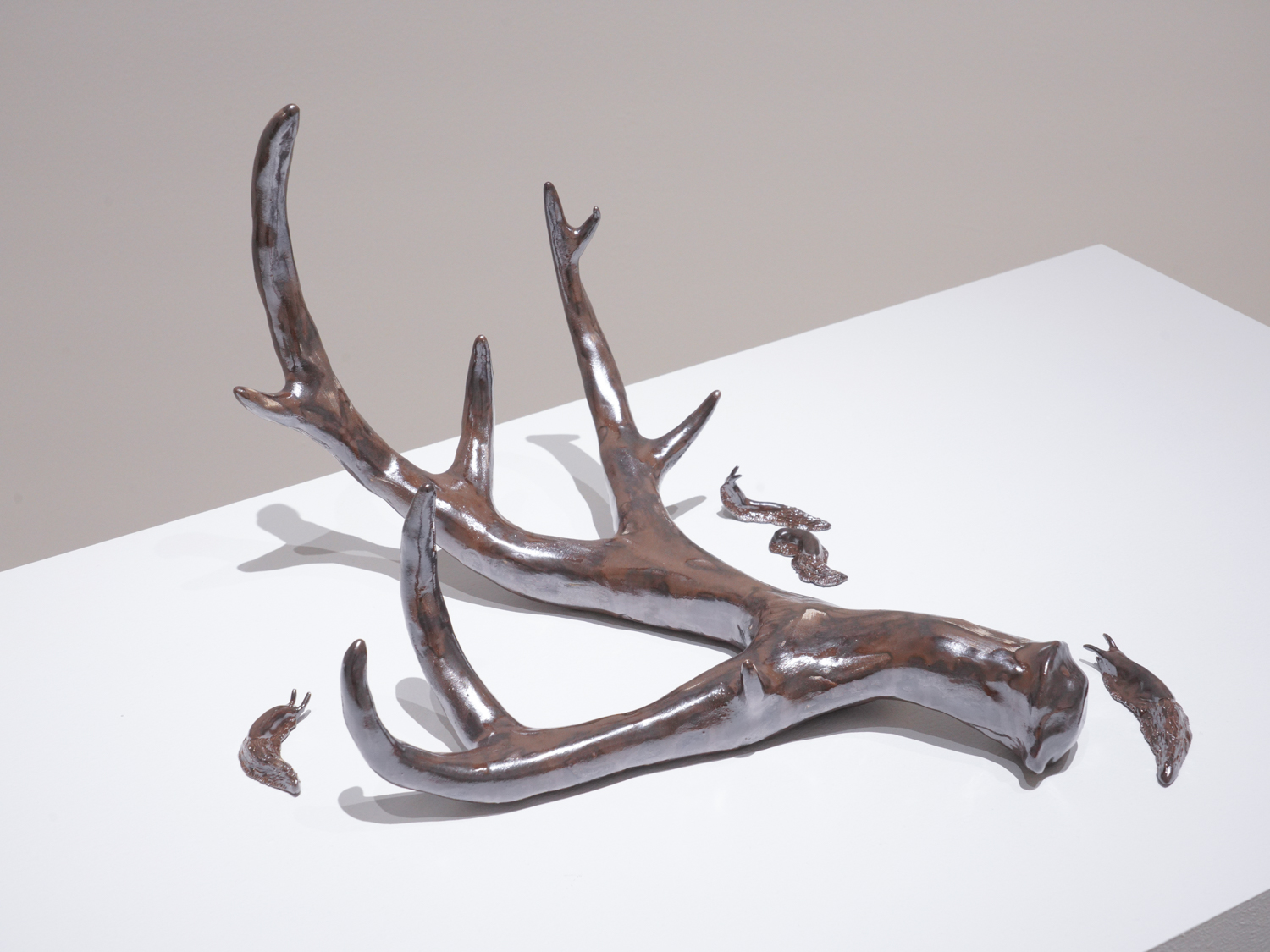 Six ceramic sculptures glazed with blend of recycled silver extracted